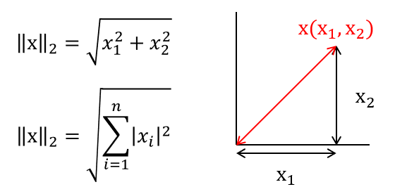L2 Norm은 벡터의 제곱을 모두 더한 값으로, 유클리드 거리(Euclidean Distance)라고 합니다.