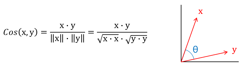 코사인 유사도는 두 벡터 사이의 각도의 코사인값과 같습니다.