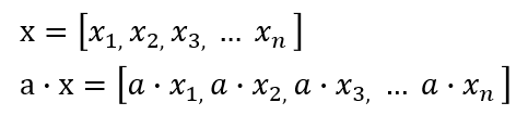또한 벡터는 스칼라와 곱하여 크기를 조정할 수 있습니다. 크기를 조정하는 경우의 곱셉은 아래와 같습니다.